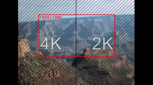 Wenn Sie nur Zugriff auf den Monitor Ihres Computers haben, hier ist ein 1920 × 1080 Bildmittelpunkt des 4K-Clips. Es ist das rote Rechteck, das im Bild unten zu sehen ist. Sie können diesen Clip auf Ihrem Desktop abspielen, um den Unterschied im Korn zu vergleichen. Das Korn ist dasselbe, das Sie auf Ihrem 4K-Monitor sehen würden.